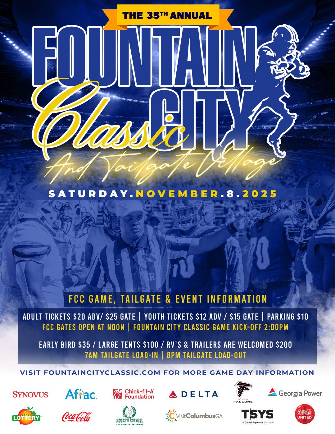 11:30 A.M. – 1:00P.M. – Fountain City Classic, Inc, Media/Coaches Luncheon. GICC located at 6501 Standing Boy Road, Columbus, GA. Invitation Only.