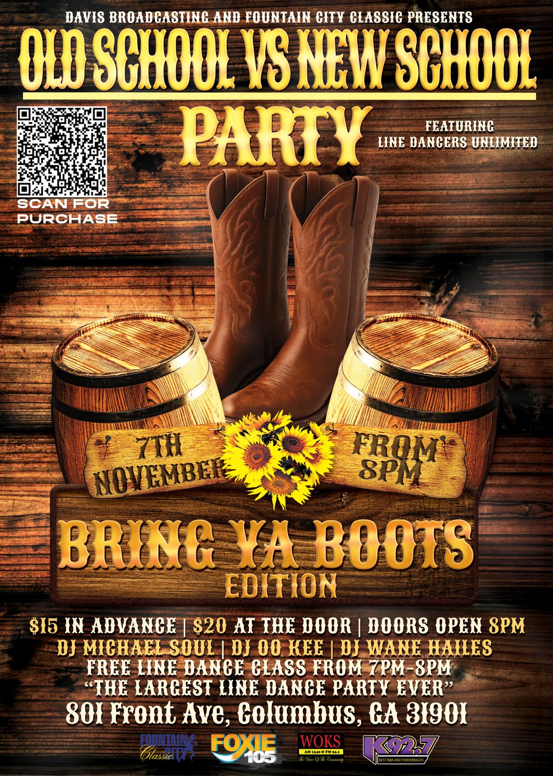 8:00 P.M. – 12:00 A.M. – Fountain City Classic, Inc. and Davis Broadcasting, Inc. Presents Old School New School Party, “Bring Ya Boots Edition” with K92.7 Michael Soul & DJ Wane Hailes and Foxie 105’s DJ OO Kee. Columbus Convention and Trade Center in the Foundry Room. 801 Front Avenue, Columbus, GA. $15 Admission in advance, $20 at the door. Cash Bar.